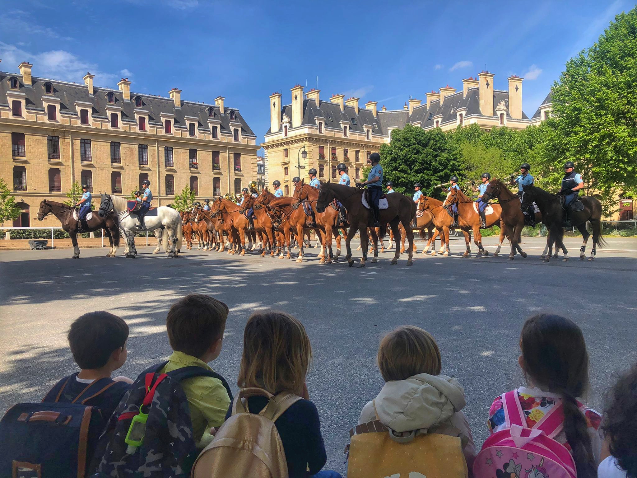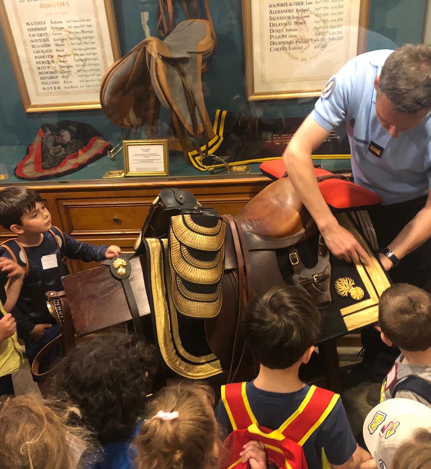 Les MS et GS sont impressionnés de découvrir ces immenses chevaux, de voir le maréchal ferrant s’occuper d’eux, d’entendre la fanfare dans la cour d’honneur.