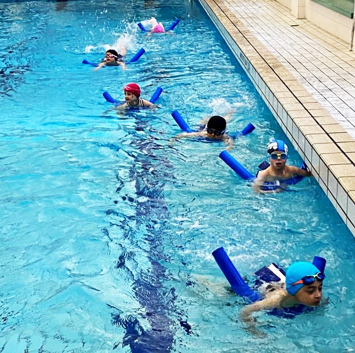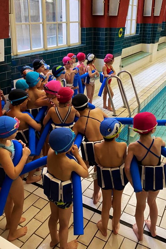 Apprendre à nager, c’est important. De vrais petits poissons nos élèves.