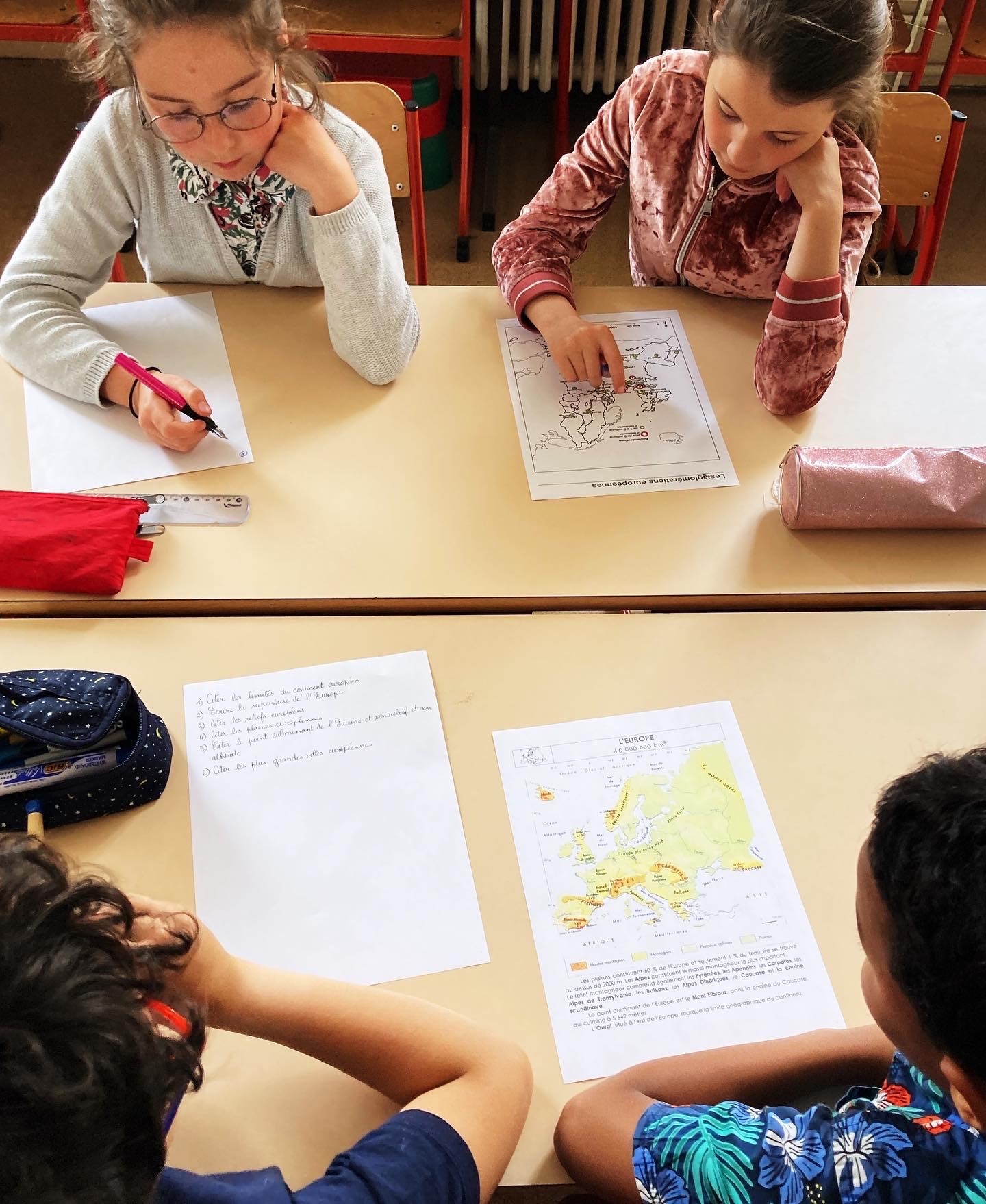 En un temps limité, on cherche sur les documents de travail les réponses aux questions, on réfléchit, on interagit, on s’entraide, en groupe on échange.