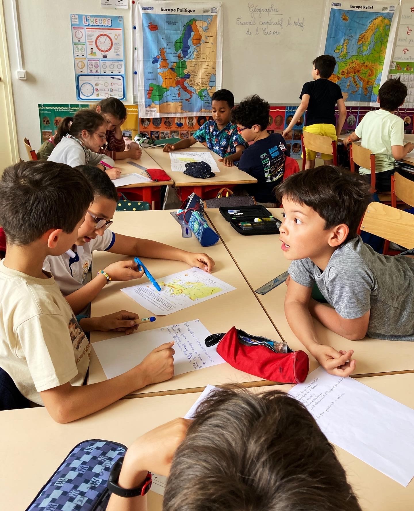 La classe de cm1 est organisée, les tables sont regroupées.